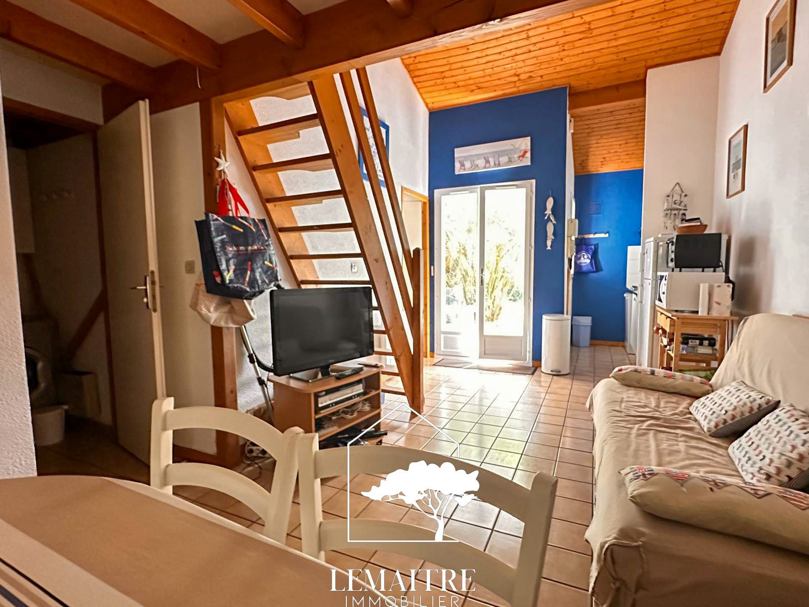 LA PALMYRE -750m commecres et 1600m plage. Dans une résidence à faibles charges et au calme, une villa de vacances comprenant pour 42.01m² habitables + 7.35m² utiles environ : Un séjour, une cuisine en décroché, une chambre, une salle d'eau et un wc séparé. A l'étage : une mezzanine avec placard, une chambre. Chauffage électrique. Une place de stationnement.