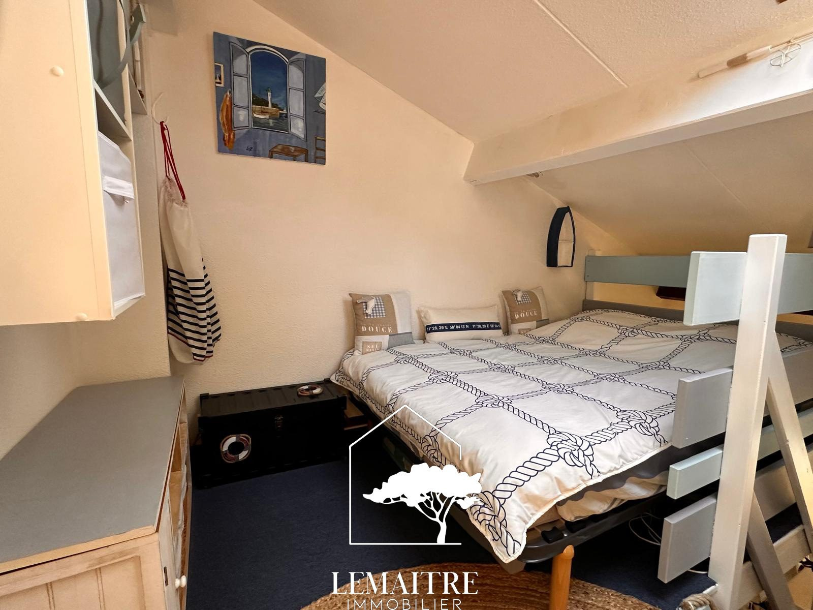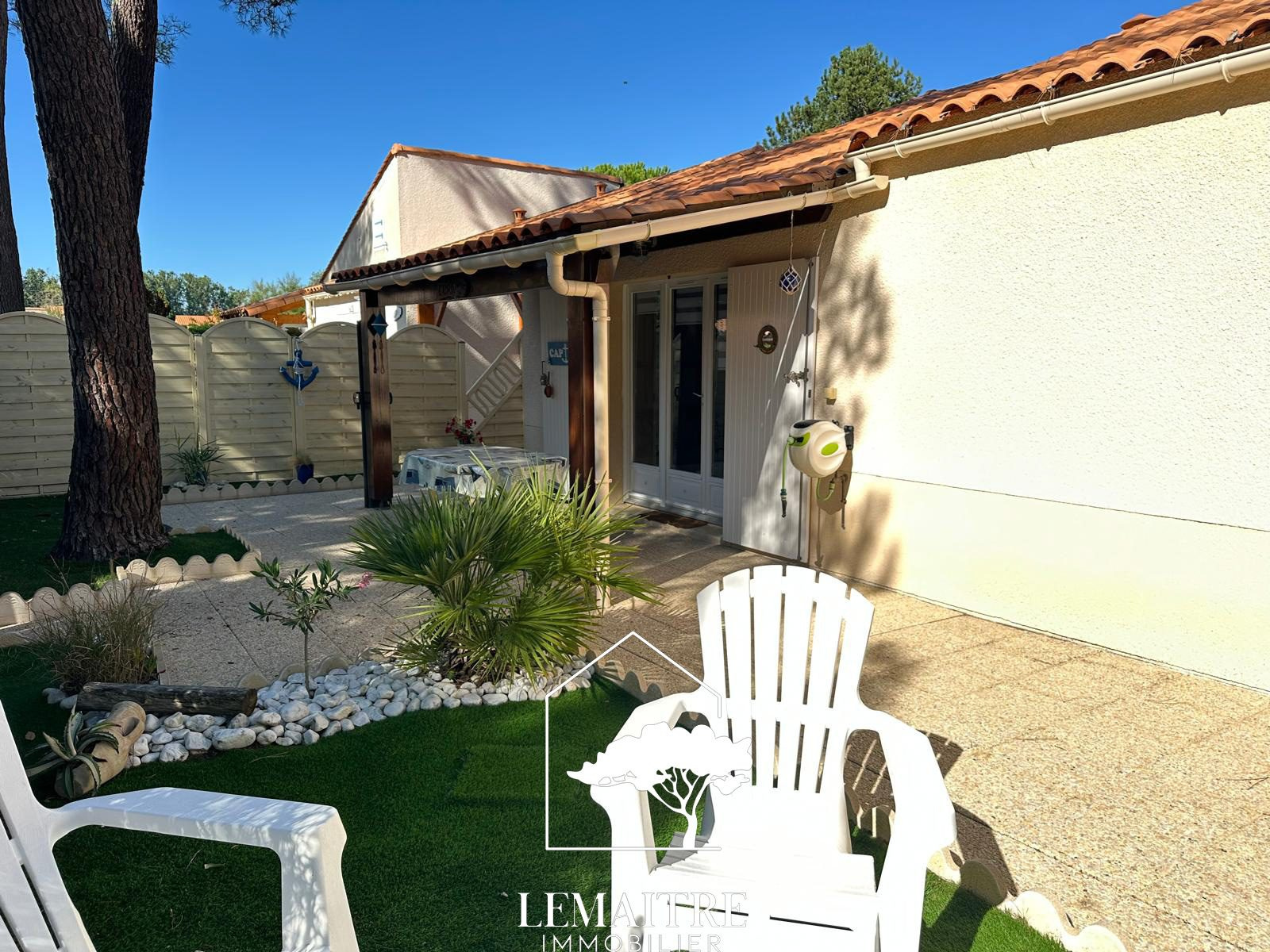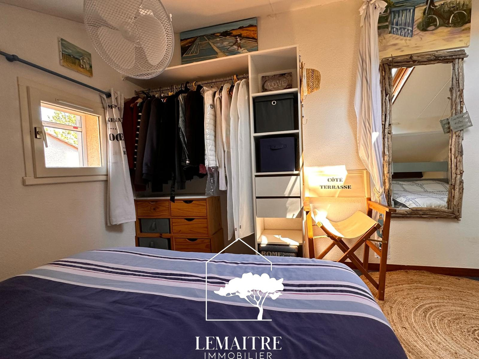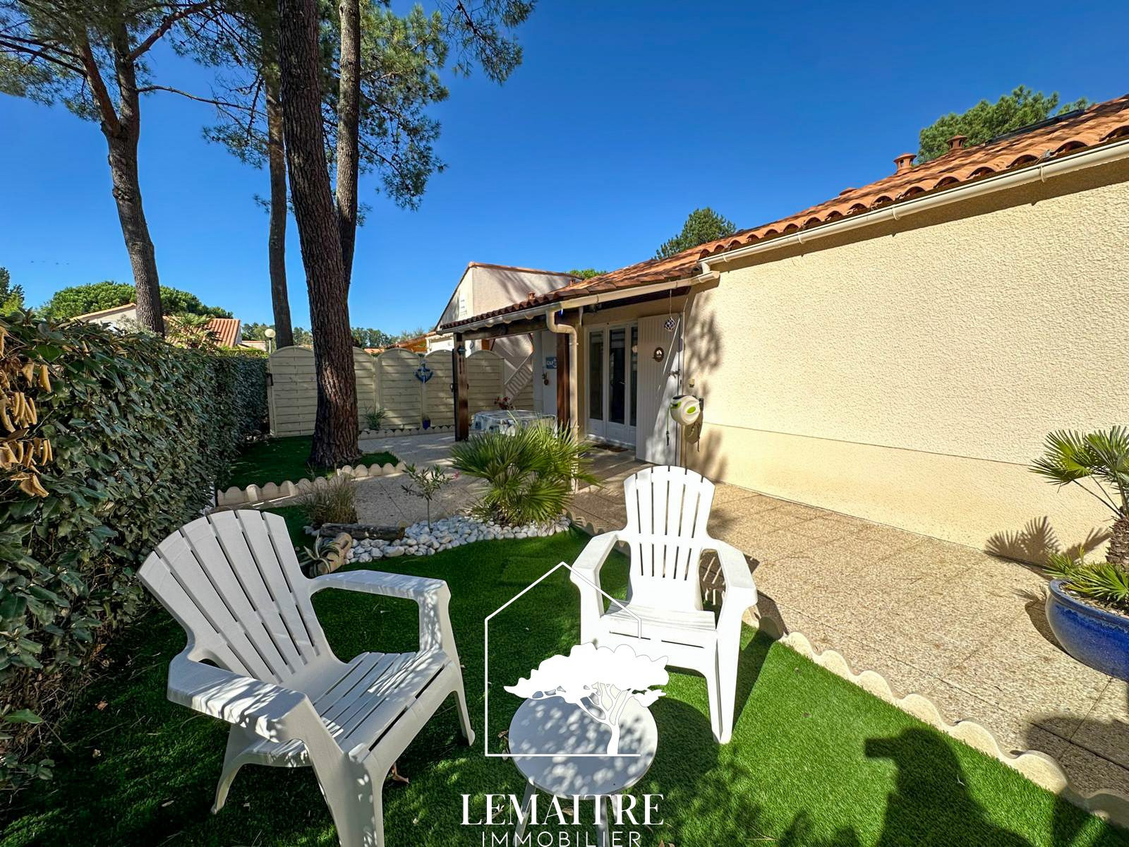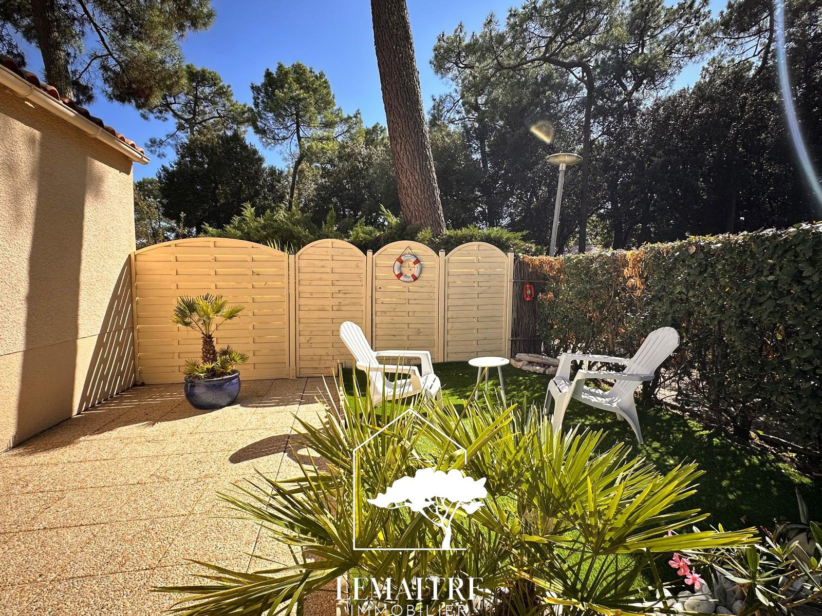 LA PALMYRE - 750m commerces et 2km plage accessible par pistes cyclable. Dans une résidence avec piscine et gardiens, une villa d'angle de 31.67m² habitables + 6.90m² utiles environ avec un jardin confortable et paysager, offrant : un séjour avec une cuisine , une chambre, une salle d'eau et un wc indépendant. A l'étage : deux espaces couchages avec lits doubles. Chauffage électrique. Grand abri de jardin et parking privatif. Vendue Meublée. Cette maison de type 3bis vous est proposée à la vente par l'agence Lemaitre immobilier. Nombre de lots de la copropriété 477 dont 250 principaux. Charges annuelles payées par le propriétaire 1172.64 euros. Honoraires inclus charge acquéreur : 5% TTC (prix 189000 €euros hors honoraires). « Les informations sur les risques auxquels ce bien est exposé sont disponibles sur le site Géorisques : www.georisques.gouv.fr ». La Palmyre est la station balnéaire de la commune des Mathes (au sein de la presqu?île d?Arvert - Charente-Maritime). Vous y découvrirez le zoo de la Palmyre, vous pourrez jouer au golf et au détour d?une balade son port, la baie de Bonne Anse et ses vastes plages ou encore la forêt de la Coubre. La Palmyre se situe à 9km de Saint-Palais-sur-mer en longeant la côte. À 17km de Royan centre, 13km du Centre-ville de la Tremblade, à 1h15 de La Rochelle, 1h45 d'Angoulême, 2h de Bordeaux, 2h10 de Poitiers et 2h50 de Limoges et 5h20 de Paris.