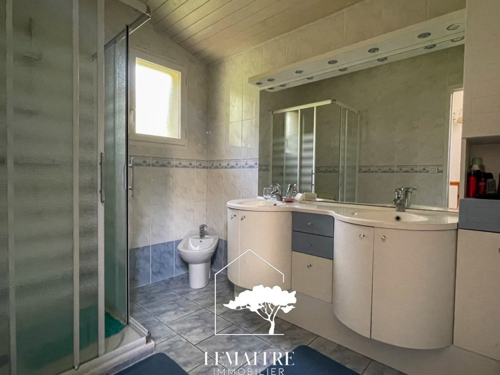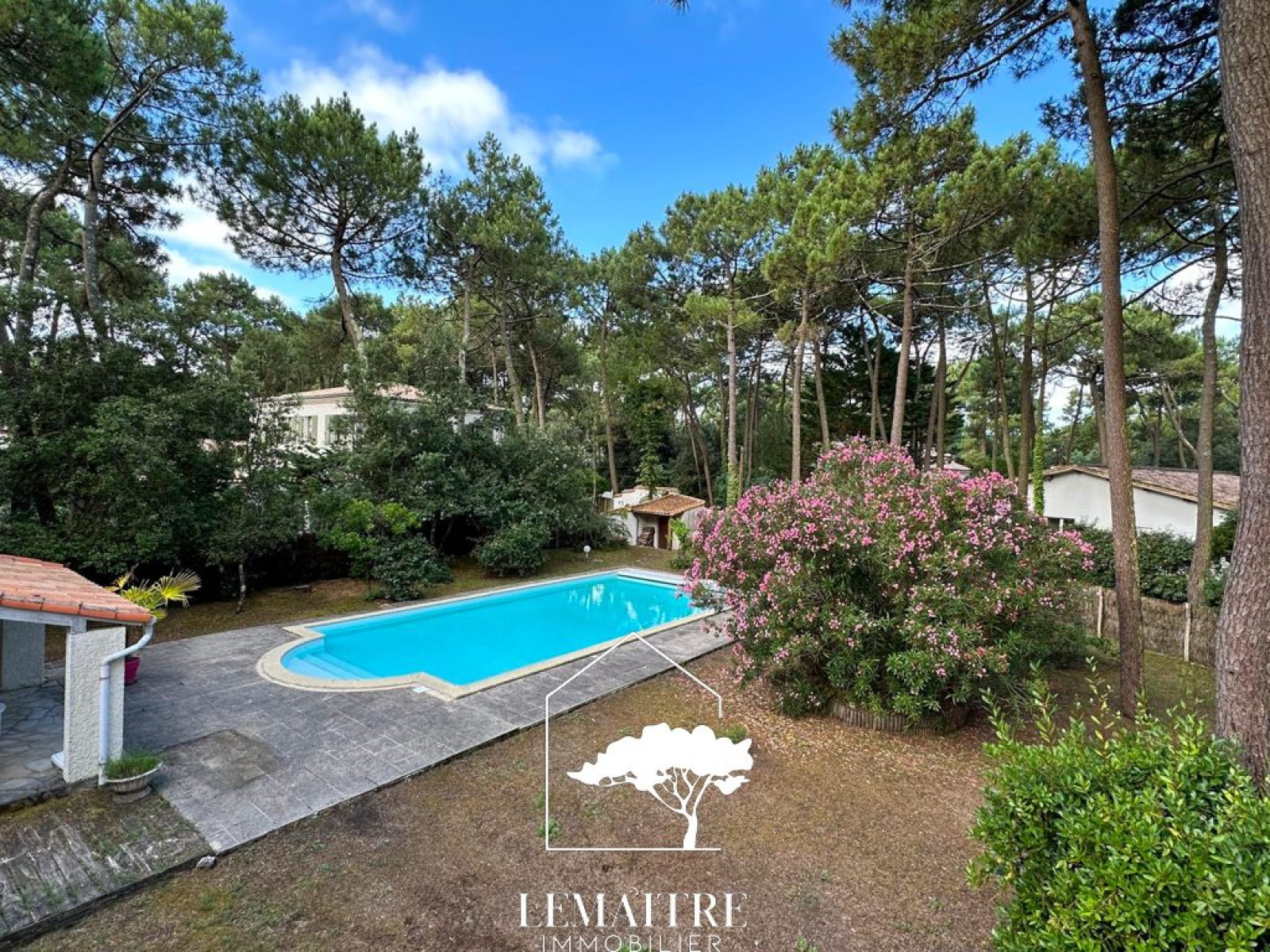 LA PALMYRE - 600m commerces et 700m plage. Dans une résidence boisée avec gardiens et services, une maison offrant pour 144m² habitables environ : une entrée avec placard, un salon avec cheminée insert, une cuisine, un dégagement, trois chambres avec placard, un bureau, une salle de bains, un wc et une chaufferie. A l'étage : un palier desservant une chambre, une salle d'eau et un wc. Chauffage fioul. Piscine. Garage Le tout édifié sur un terrain de 1800m². Cette maison de type 6 vous est proposée à la vente par l'agence Lemaitre immobilier. Honoraires inclus charge acquéreur : 4% TTC (prix 750 000 €euros hors honoraires). « Les informations sur les risques auxquels ce bien est exposé sont disponibles sur le site Géorisques : www.georisques.gouv.fr ». . Logement à consommation énergétique excessive : classe F . La Palmyre est la station balnéaire de la commune des Mathes (au sein de la presqu?île d?Arvert - Charente-Maritime). Vous y découvrirez le zoo de la Palmyre, vous pourrez jouer au golf et au détour d?une balade son port, la baie de Bonne Anse et ses vastes plages ou encore la forêt de la Coubre. La Palmyre se situe à 9km de Saint-Palais-sur-mer en longeant la côte. À 17km de Royan centre, 13km du Centre-ville de la Tremblade, à 1h15 de La Rochelle, 1h45 d'Angoulême, 2h de Bordeaux, 2h10 de Poitiers et 2h50 de Limoges et 5h20 de Paris.