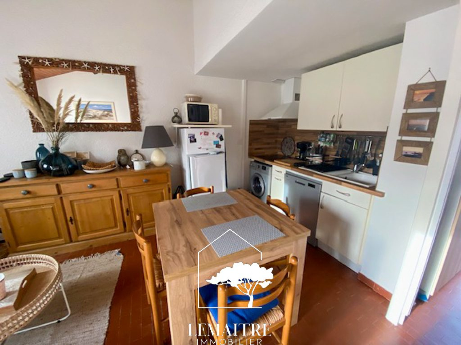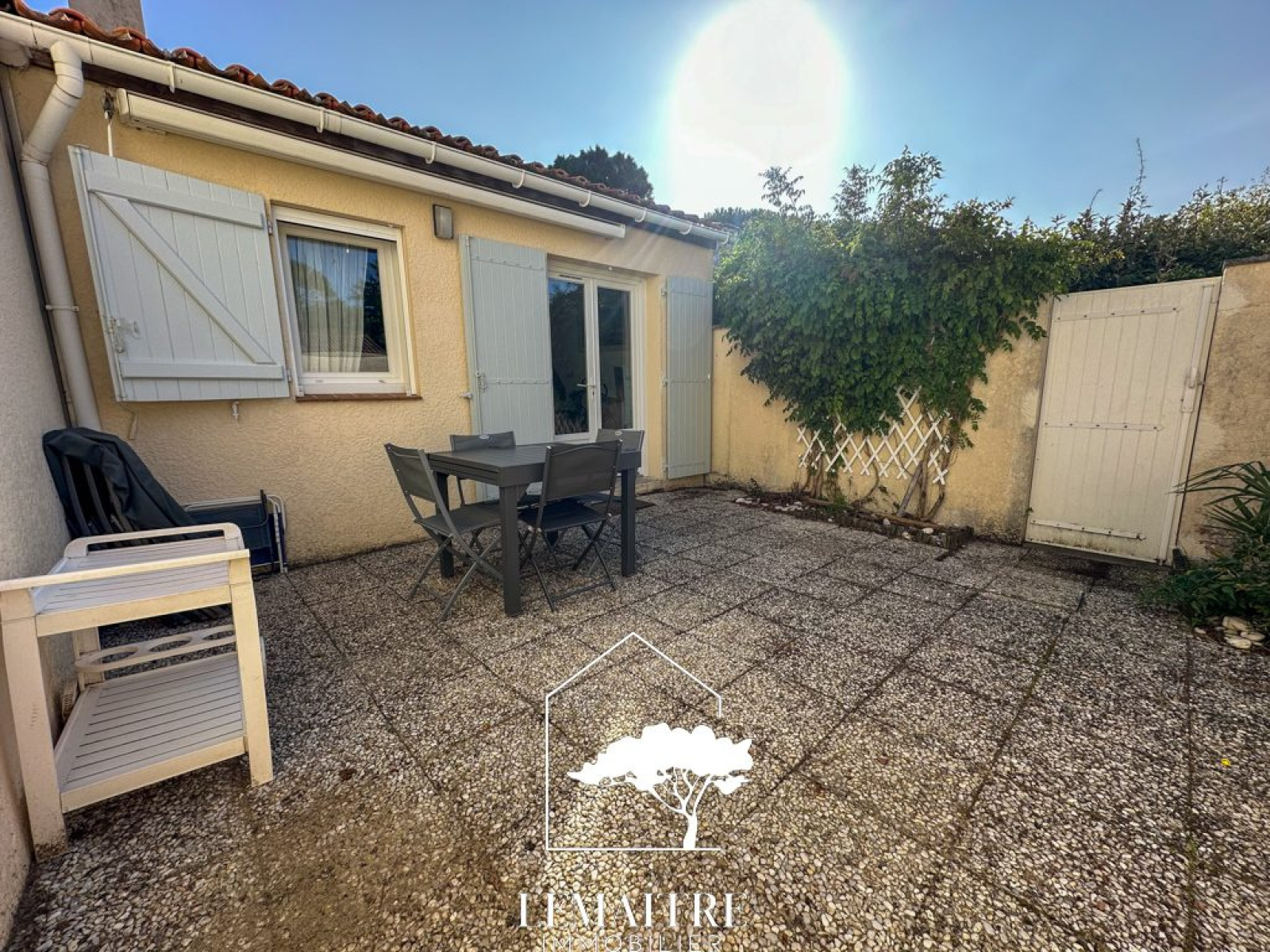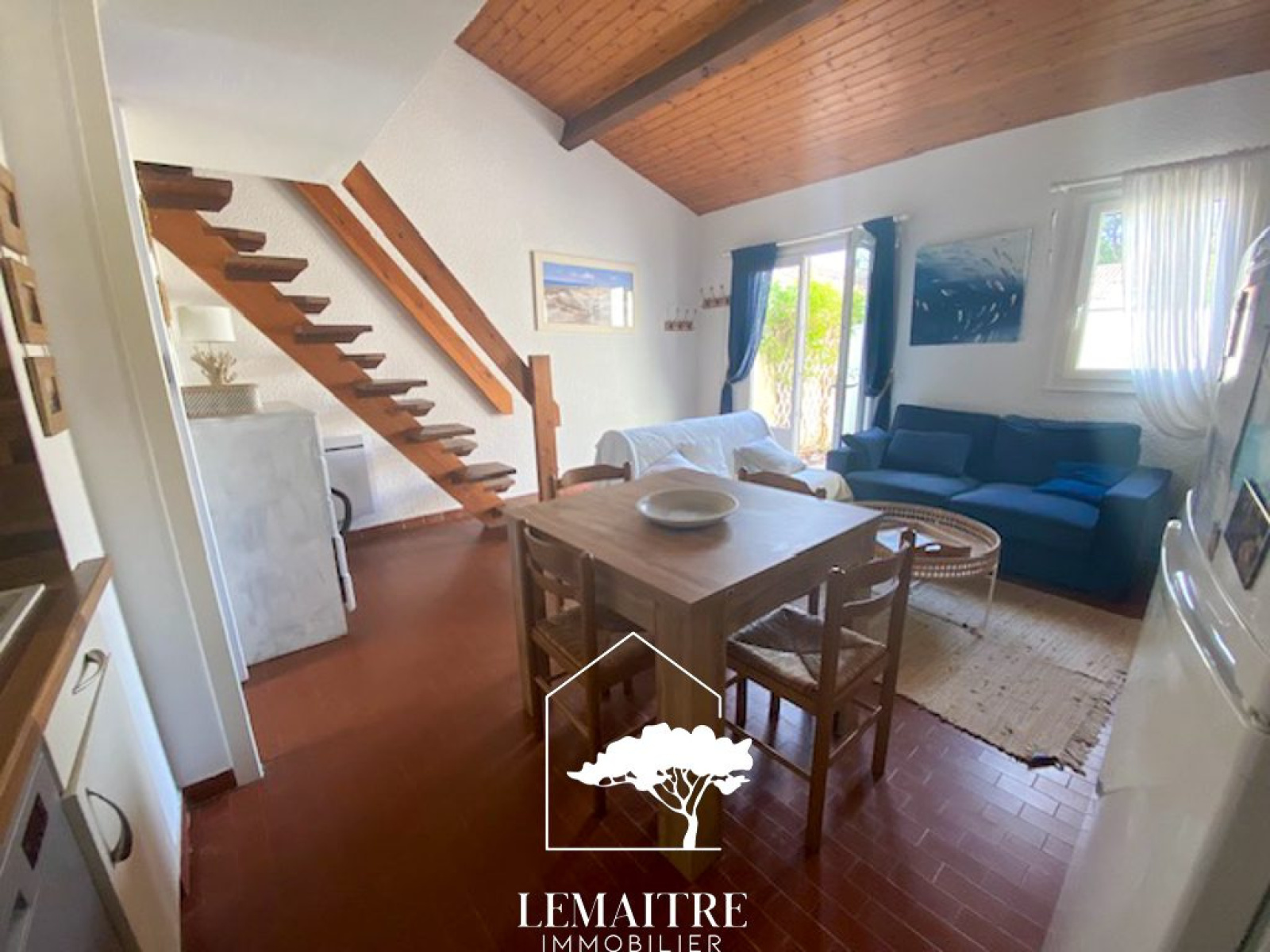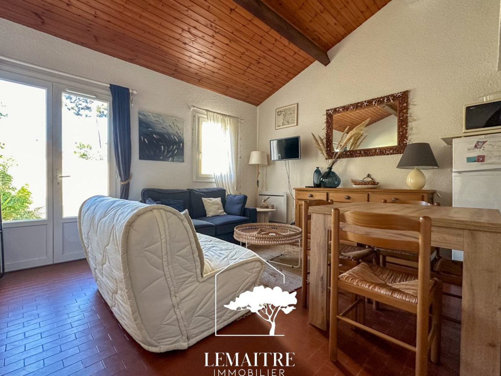 LA PALMYRE, Proche centre-ville et Plages. Dans un environnement agréable et au calme, agréable et lumineuse maison de vacances de 36.45m² habitables +10.24m²m² utiles,offrant : une entrée avec cabine, un séjour avec cuisine équipée, une salle d'eau avec wc. A l'étage : une chambre fermée avec rangements. Patio sans vis-à-vis avec store. Parking. Vendue en grande partie meublée. Chauffage électrique neuf dans la piéce de vie et la salle d'eau. Secteur très recherché, faibles charges, à visiter sans tarder. Cette maison de type 3 vous est proposée à la vente par l'agence LEMAITRE IMMOBILIER à la Palmyre.Honoraires inclus charge acquéreur : 3.13% TTC (prix 192 000 €euros hors honoraires). La Palmyre est la station balnéaire de la commune des Mathes (au sein de la presqu?île d?Arvert). Vous y découvrirez le zoo de la Palmyre, vous pourrez jouer au golf et au détour d?une balade son port, la baie de Bonne Anse et ses vastes plages ou encore la forêt de la Coubre. La Palmyre se situe à 9km de Saint-Palais-sur-mer en longeant la côte. À 17km de Royan centre, et 13km du Centre-ville de la Tremblade.