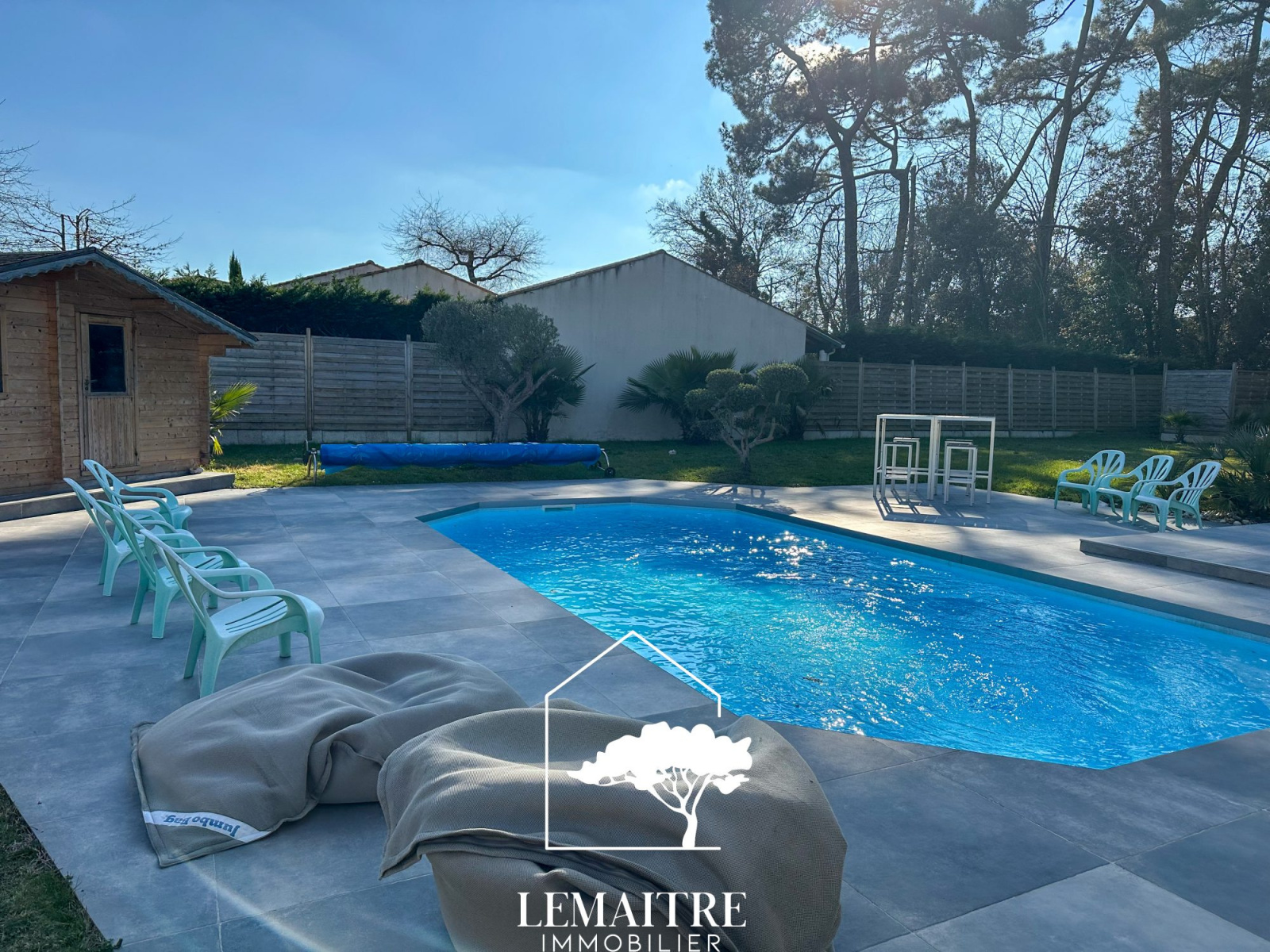 LES MATHES . Maison de plain-pied avec piscine, au coeur d'un environnement privilégié À seulement 1,4 km des commerces, cette magnifique maison de plain-pied de 175m² habitables, rénovée en 2022, vous séduira par son grand séjour lumineux, son environnement calme et son état impeccable. Baignée de lumière grâce à son exposition sud, elle offre un espace de vie spacieux avec une cuisine américaine équipée, idéal pour partager des moments conviviaux. Côté nuit, deux chambres disposent de leur salle d'eau privative, complétées par deux autres chambres, un dressing, une salle de bains avec WC et un WC séparé. Son confort est renforcé par un chauffage électrique, une climatisation et un poêle à bois. À l'extérieur, le terrain de 1 360m² entièrement paysager accueille une piscine chauffée avec plage de 115m², offrant un cadre idyllique pour profiter des beaux jours en toute tranquillité. Un bien rare aux Mathes, à visiter sans tarder ! Contactez-nous dès maintenant.