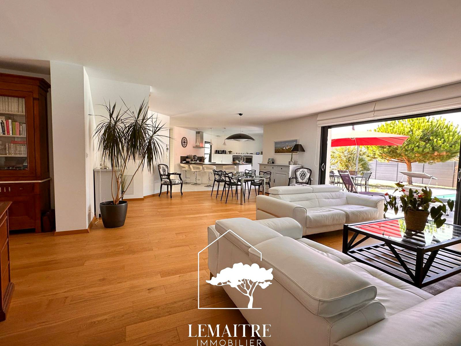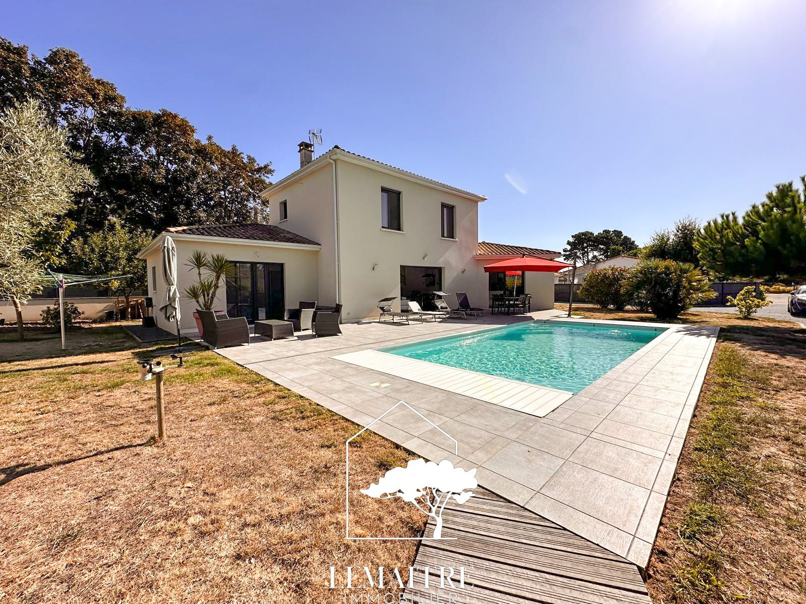 LES MATHES : Située dans un secteur calme à proximité des plages et du centre, maison contemporaine de 2015 offrant 163 m² habitables sur un terrain clos et paysager de 1 278 m², exposée plein sud. Elle se compose d?un vaste séjour lumineux avec cuisine ouverte aménagée et équipée, trois chambres spacieuses (possibilité d'une quatrième), deux salles d'eau, rangements et dégagements. Prestations de qualité : ouvertures aluminium double vitrage, piscine 9x4 m au sel, panneaux solaires, terrain de pétanque. Grand garage pouvant accueillir camping-car ou bateau. À proximité des commerces, écoles et services. Elle sera idéal en résidence principale ou maison de vacances dans l'un des secteurs les plus recherchés de la côte atlantique.